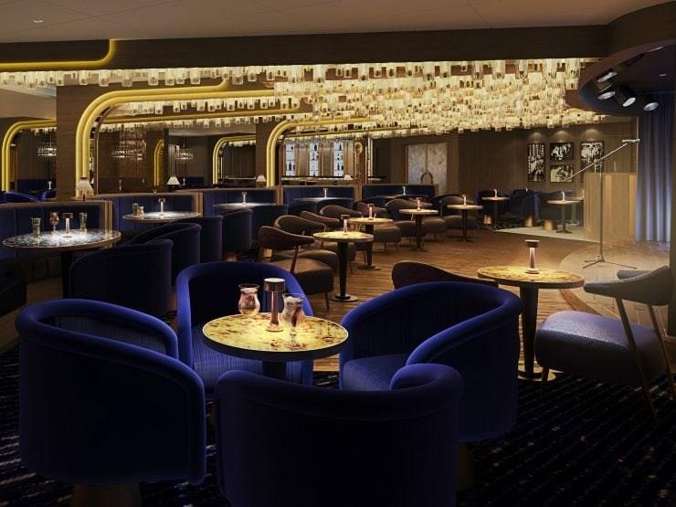 In the elevated opulence of Queen Anne's iconic Commodore Club, be enthralled by dazzling art deco-inspired decor. Sink into a plush seat and soak up breathtaking views from its lofty location on Deck 12, or indulge in an evening drink while the soothing sound of the piano fills your ears.